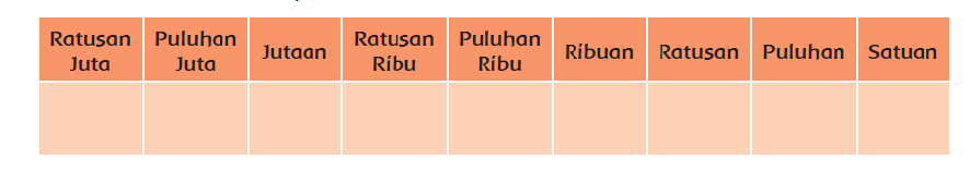 Apabila bilangan 160.800.000 ditulis pada tabel nilai tempat, di manakah angka 1 dan 6 ditempatkan?