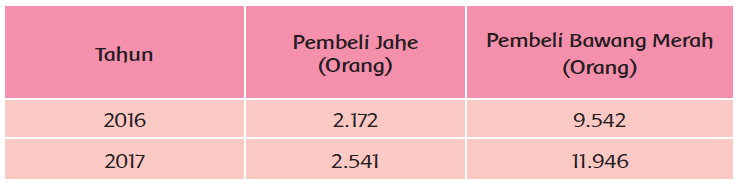 3. Sekitar berapa kalinya jumlah pembeli jahe dari jumlah pembeli bawang merah di tahun 2017