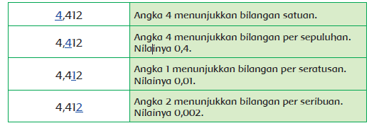 Perhatikan nilai tempat untuk bilangan bulat dan bilangan desimal berikut!