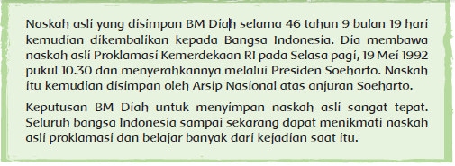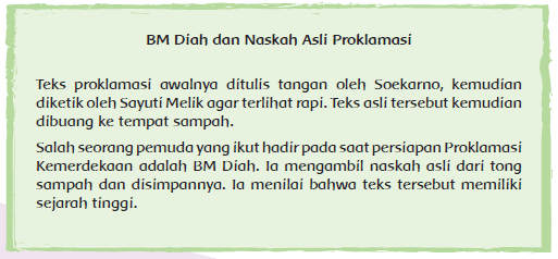 Proklamasi Indonesia, sebagai tonggak kemerdekaan Indonesia, merupakan wujud dari persatuan bangsa Indonesia. Kemerdekaan Indonesia dicapai setelah melalui perjalanan panjang para pejuang bangsa melawan penjajah. Persatuan yang kuat memperteguh tekad mereka untuk mewujudkan negara yang berdaulat, adil, dan makmur. Keteguhan hati dalam mewujudkan persatuan dapat dicontoh dari seorang