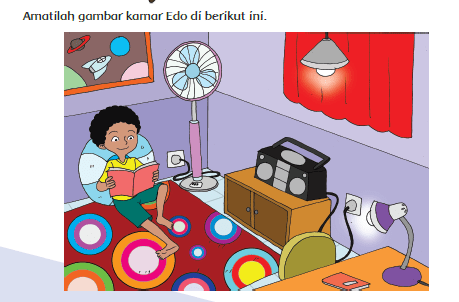 - Di kamar Edo, benda-benda apa saja yang menggunakan listrik?