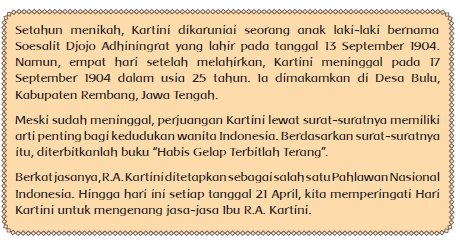 - Sikap apa saja yang bisa kalian teladani dari Ibu Kartini?